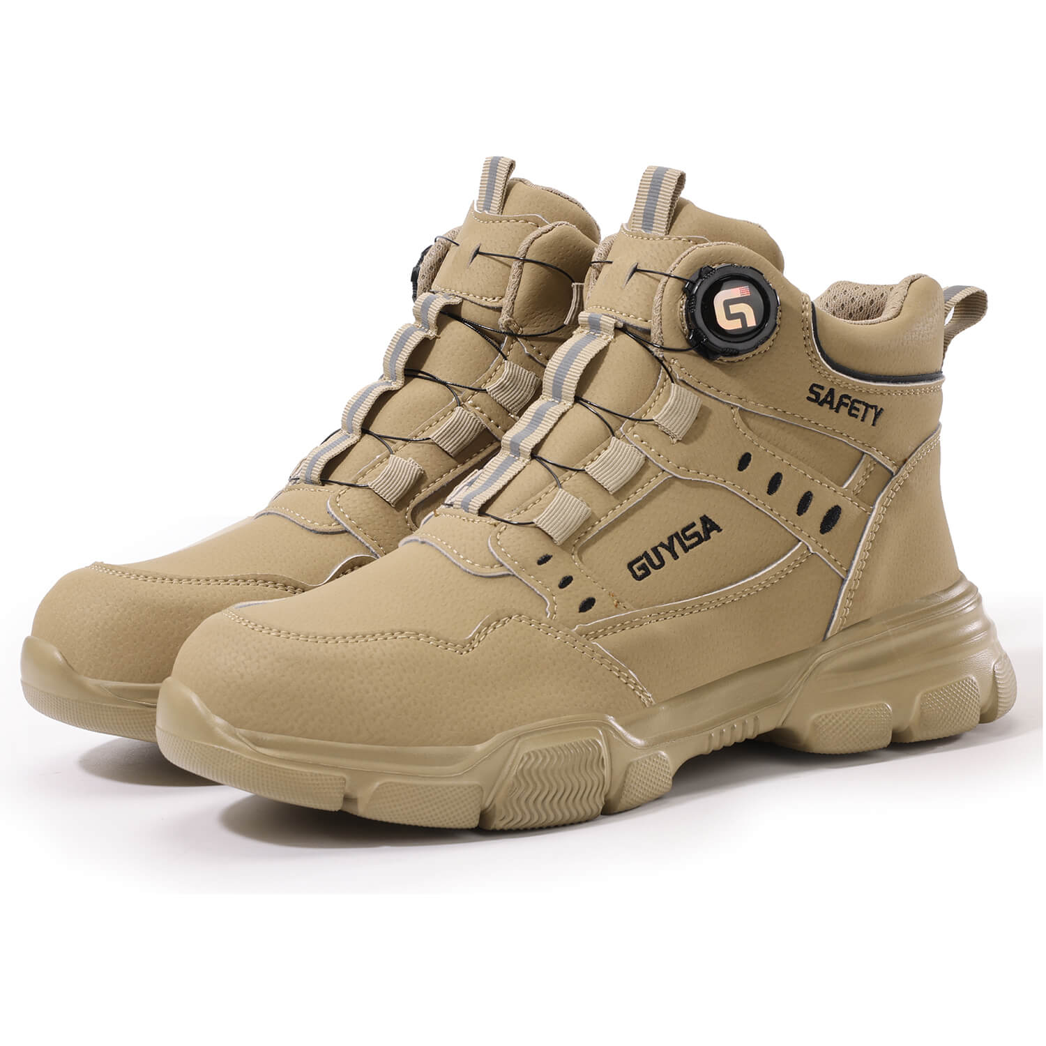 Easy-Tie Knob Lacing System - Automatic revolving buckle, a game-changing feature design. It makes tying and adjusting your shoelaces a breeze and keeps your work boots stay securely fastened from morning to night.